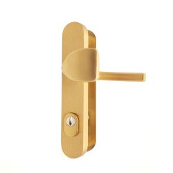 Kování je vyrobené z eloxovaného hliníku, vybavené svorníky proti odvrtání, pevnostními šrouby a kalenou ocelovou deskou chránící vložku zámku.