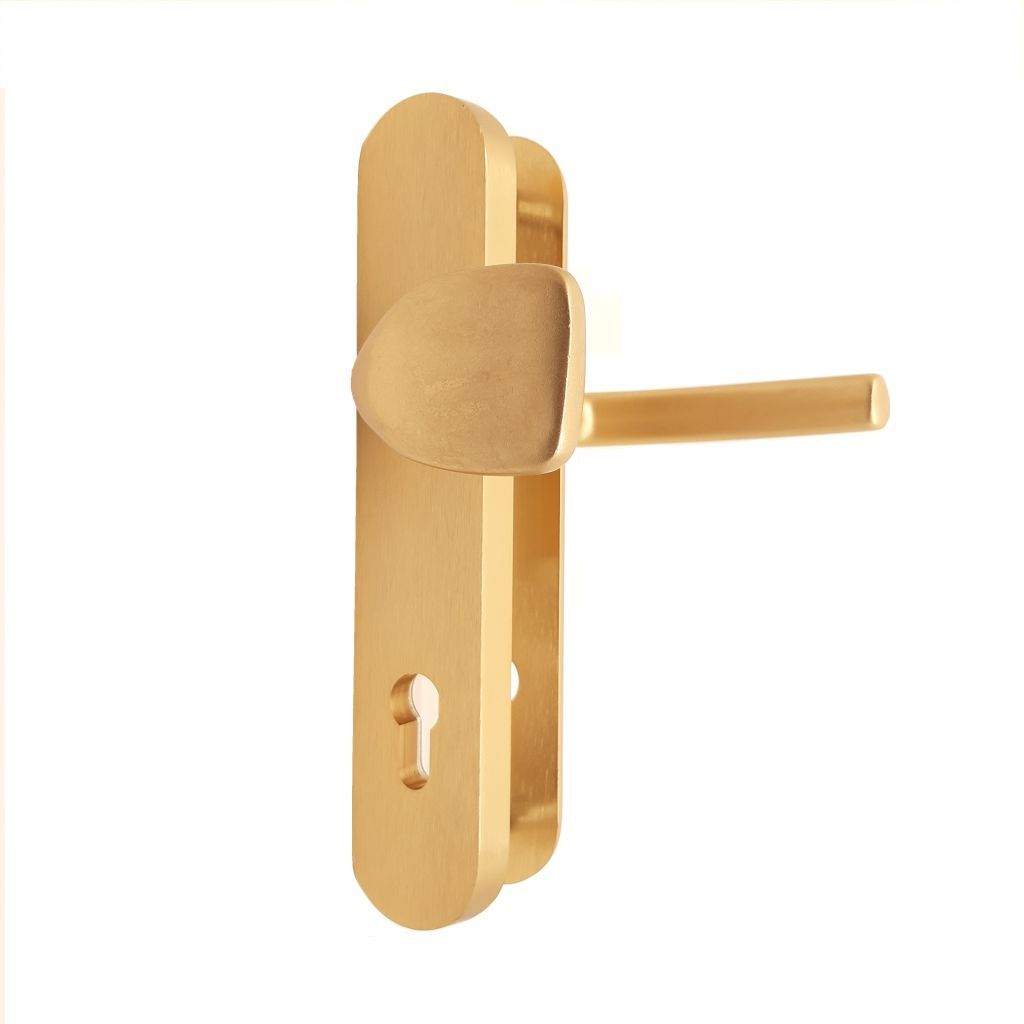 Kování je vyrobené z eloxovaného hliníku, vybavené svorníky proti odvrtání, pevnostními šrouby a kalenou ocelovou deskou chránící vložku zámku.