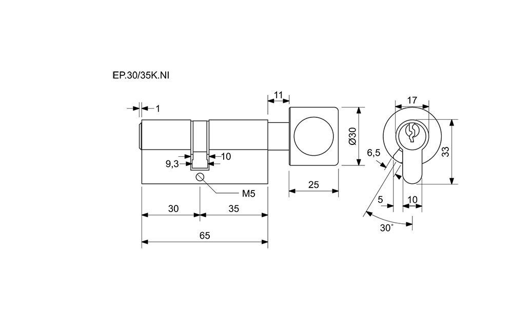Cylindrická vložka RICHTER EURO Plus 30+35K s knoflíkem Nikl 3klíče