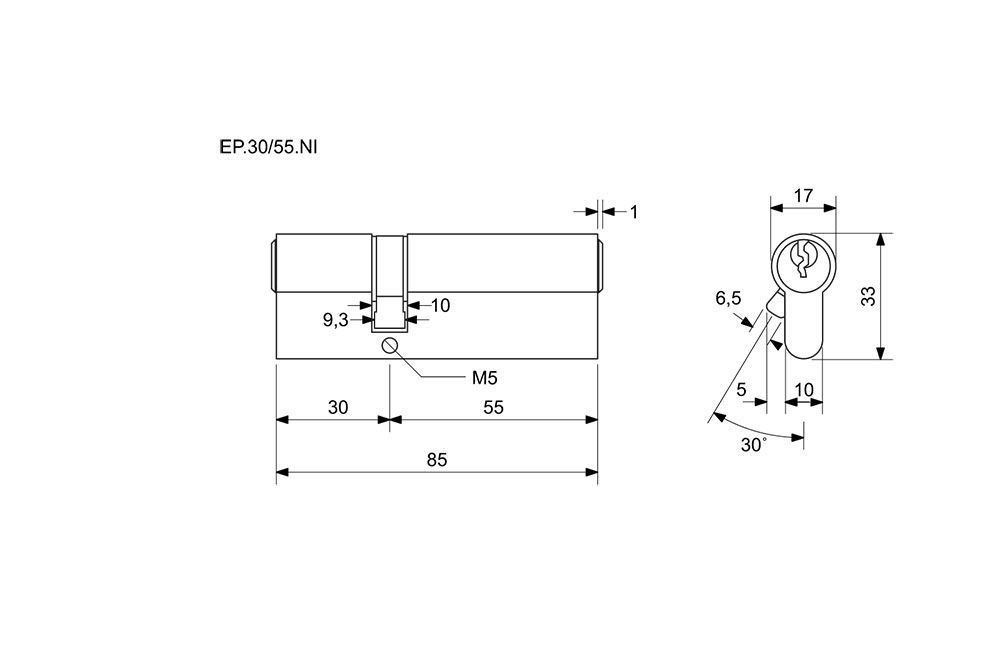 Cylindrická vložka RICHTER EURO Plus 30+55 Nikl 3klíče