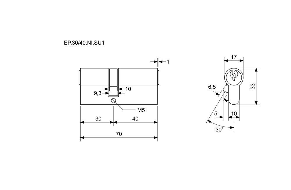 Cylindrická vložka RICHTER EURO Plus 30+40 SU1 Nikl 3klíče