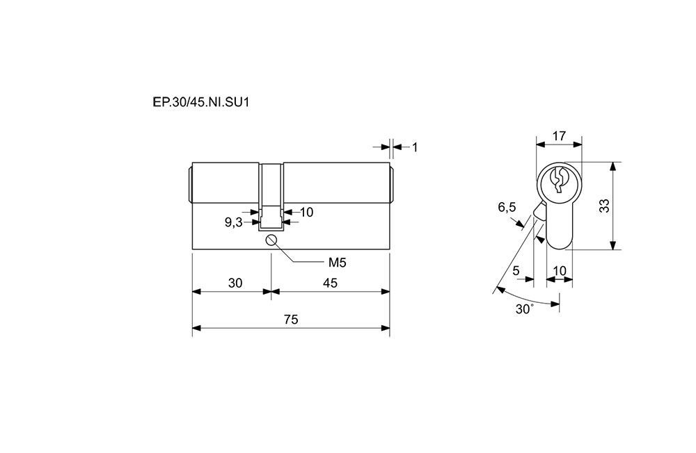 Cylindrická vložka RICHTER EURO Plus 30+45 SU1 Nikl 3klíče