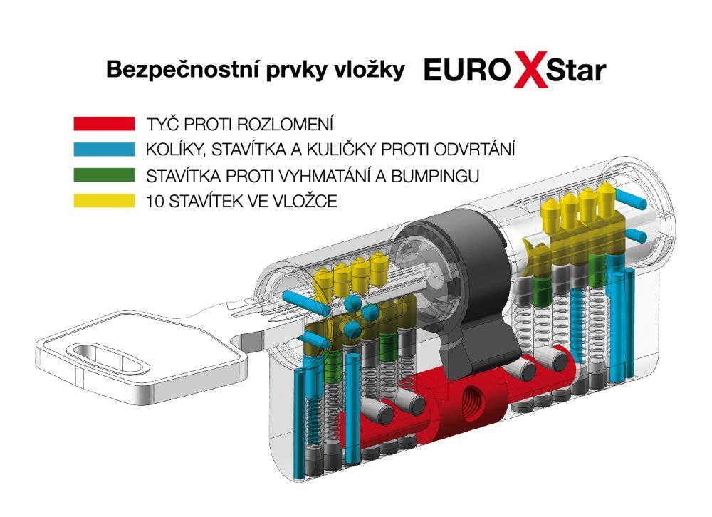 Bezpečnostní 10stavítková vložka s ocelovou tyčí proti rozlomení.