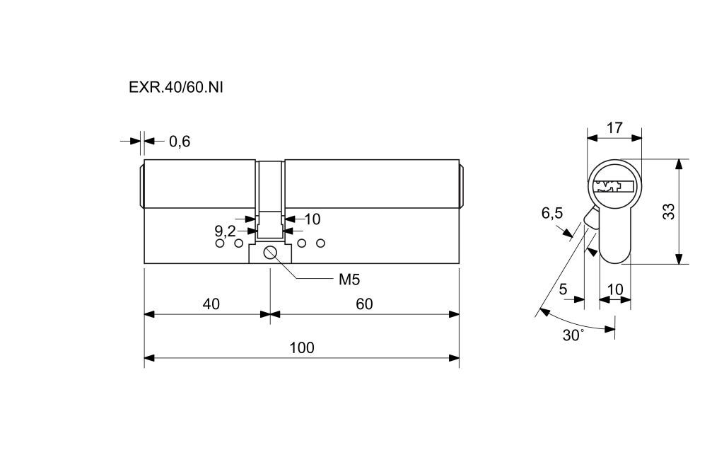 Cylindrická vložka RICHTER EUROXStar 40+60 Nikl 4.stupeň bezpečnosti 6kl.