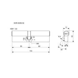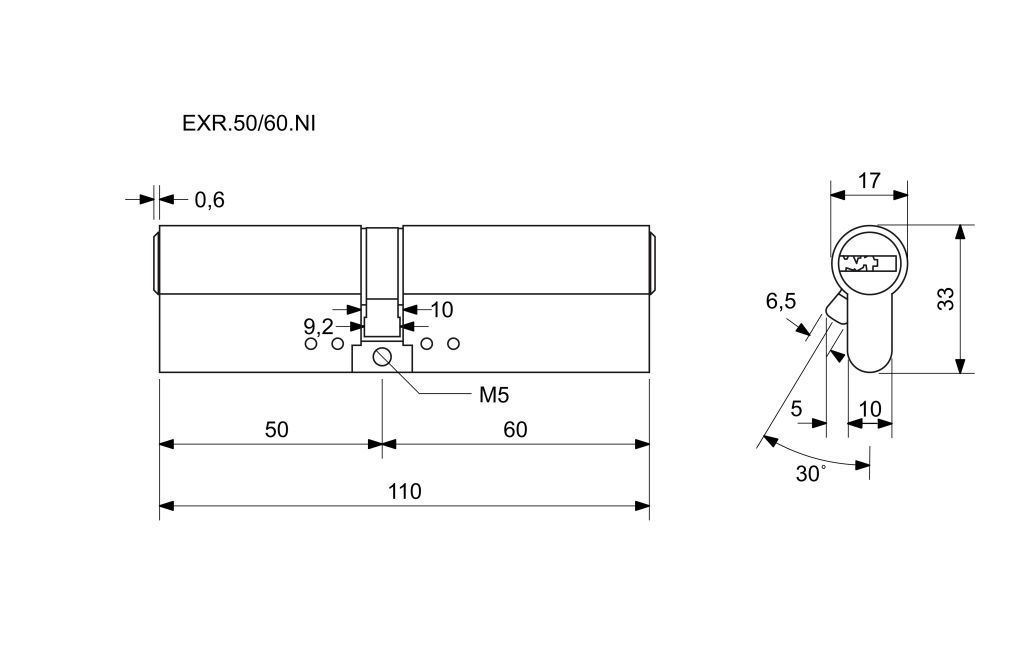 Bezpečnostní 10stavítková vložka s ocelovou tyčí proti rozlomení.