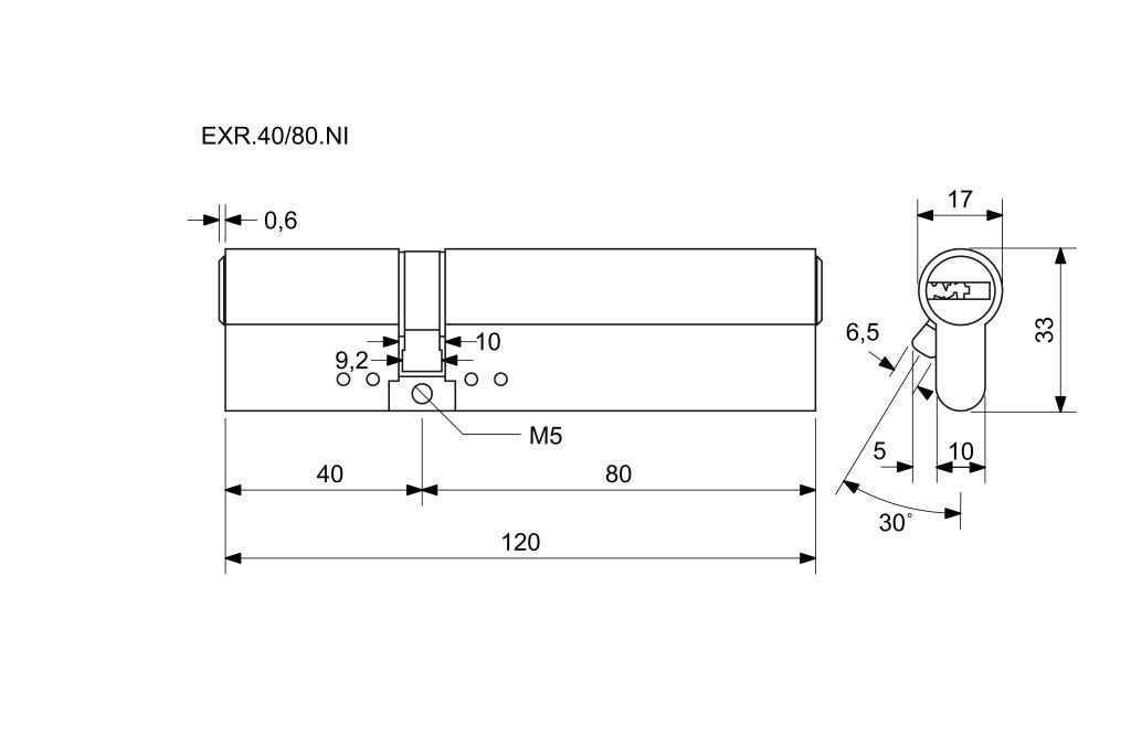 Bezpečnostní 10stavítková vložka s ocelovou tyčí proti rozlomení.