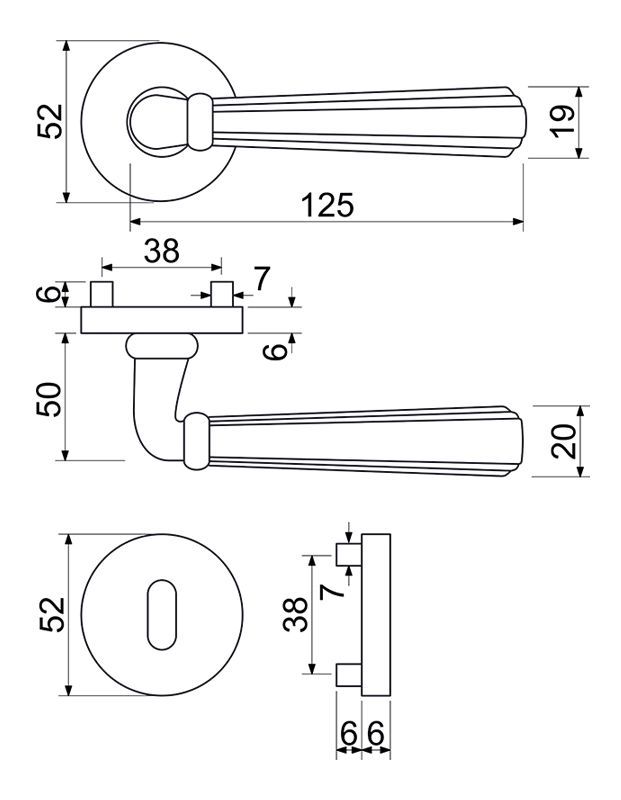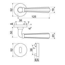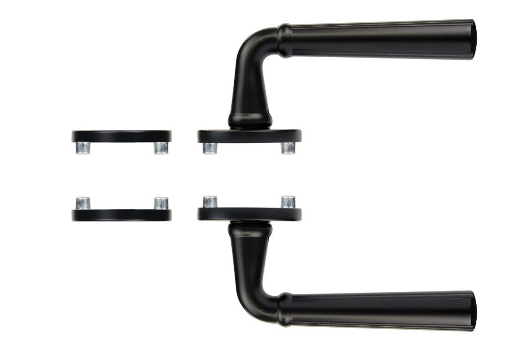 Zamakové kování na kulatých rozetách s vratnou pružinou klik