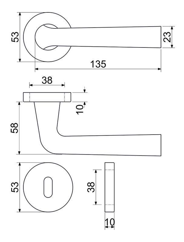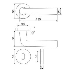Ekonomické ocelové kování na kulatých rozetách s vratnou pružinou klik