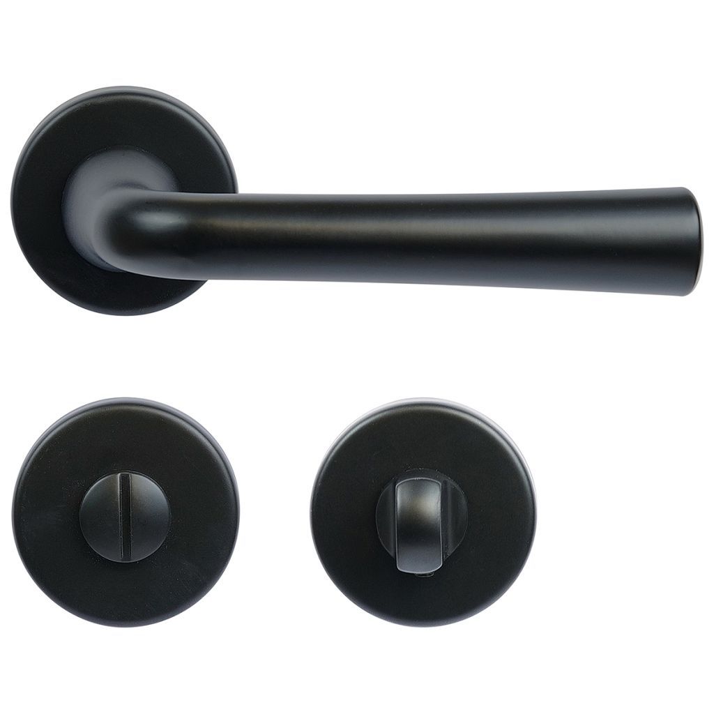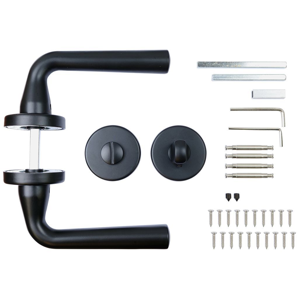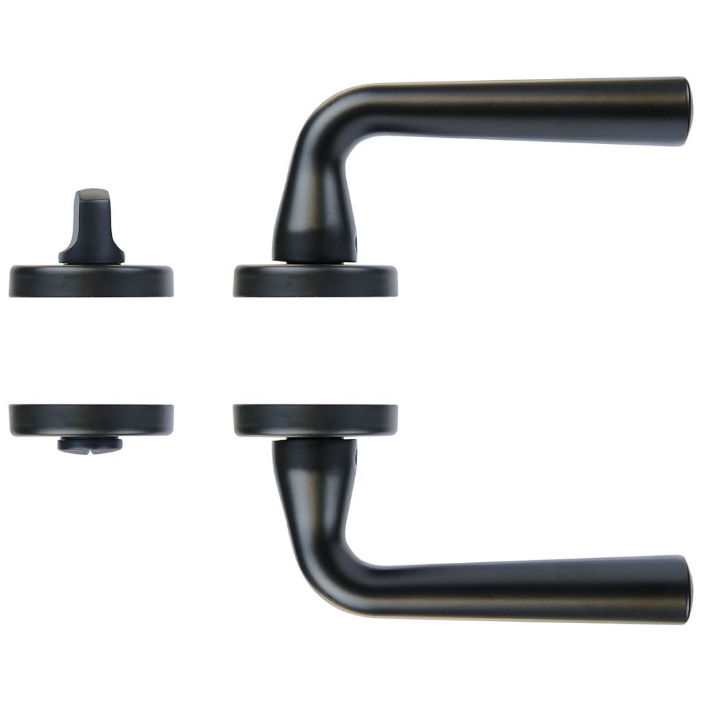 Ekonomické ocelové kování na kulatých rozetách s vratnou pružinou klik.