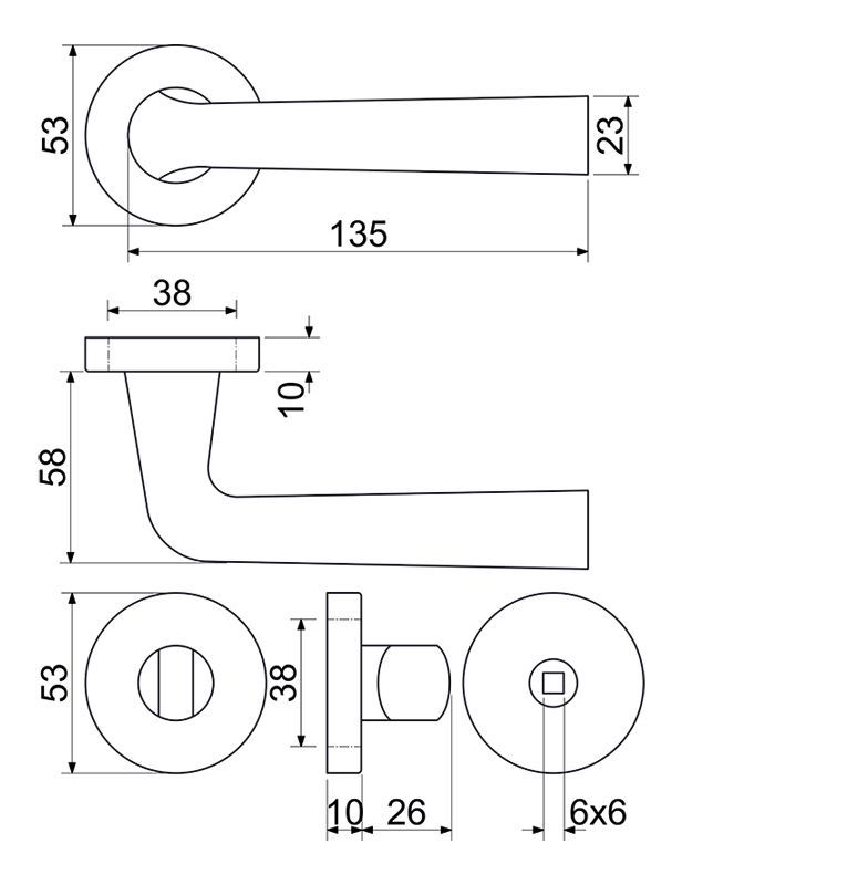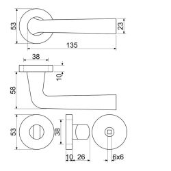 Provedení WC balení obsahuje čtyřhran o velikosti 6x6 mm a redukci 6/8 mm
