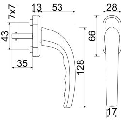 Hliníková okenní klika RICHTER RHW.007.F1 Stříbrná