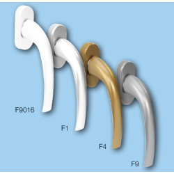 Hliníková okenní klika se zinkovaným jádrem.