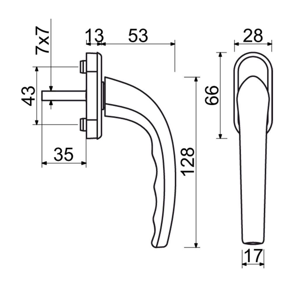 Hliníková okenní klika RICHTER RHW.007.F9 Nerez imitace