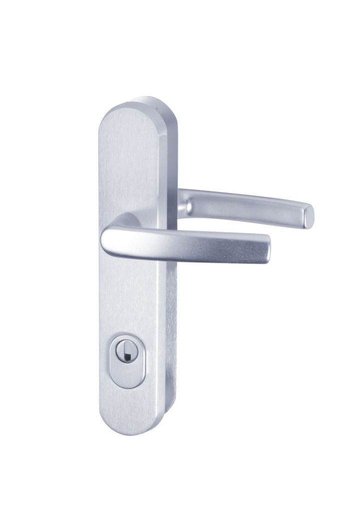 Masivní hliníkové bezpečnostní kování v povrchové úpravě F1 - stříbrný elox.
