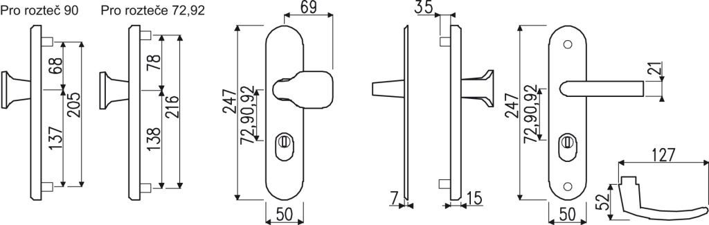 Hliníkové bezpečnostní kování RICHTER madlo-klika bez překrytí vložky R.101.PZ.92.F1.TB3