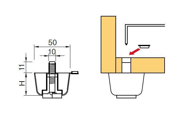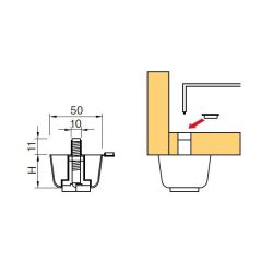 U kluzáku je možnost výškové regulace (-0,+20) vloženým opěrným šroubem M8 a krytkou.