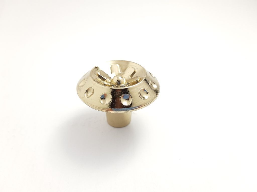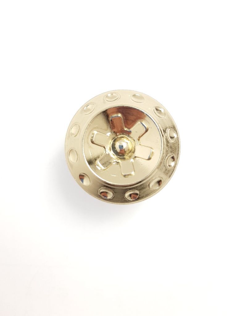 Celokovový knopek ze slitiny zinku galvanicky pokovený, balený včetně šroubku M4 pro uchycení.