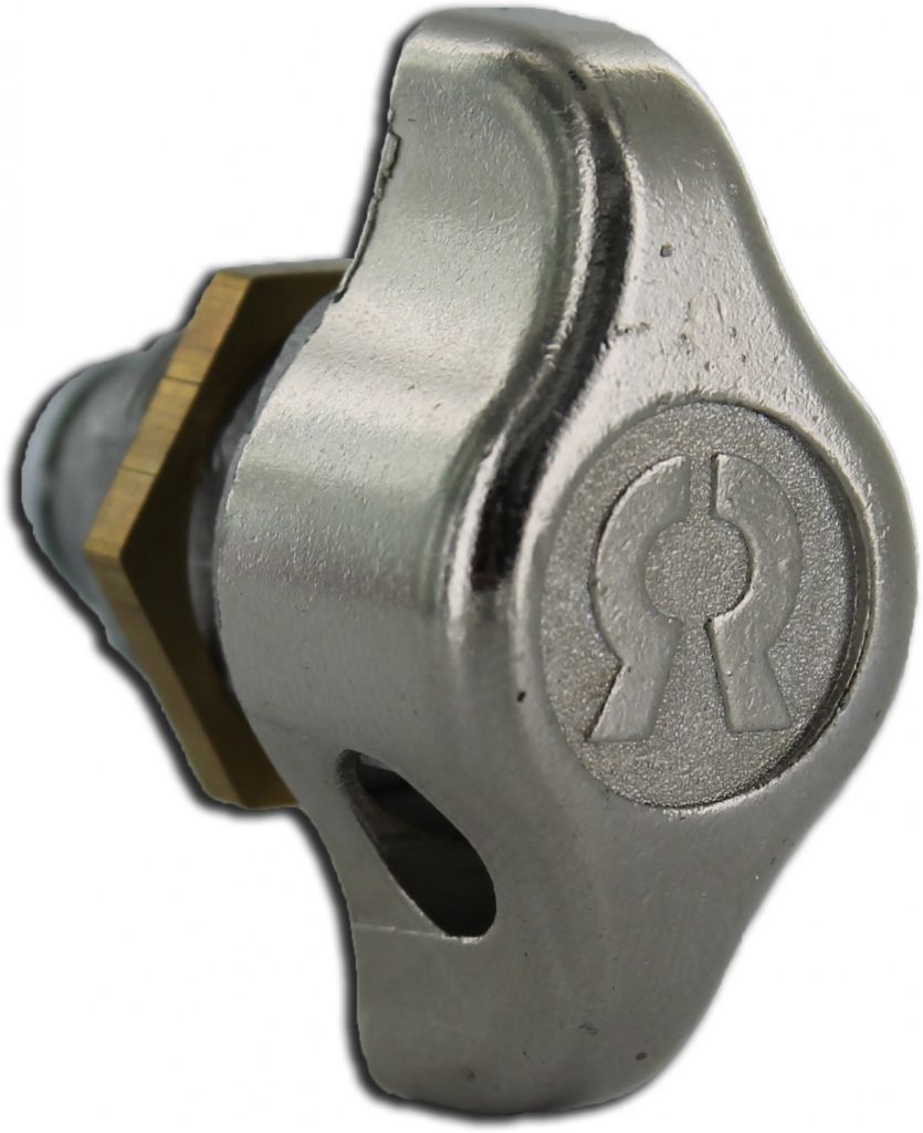 Nábytkový zámek se závorkou odnímatelnou, na matku s otvorem pro visací zámek, bez klíčů.