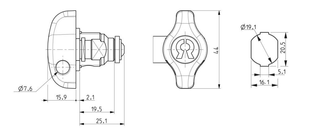 RONIS 02250005020 PRAVÝ - Nábytkový zámek s otvorem na visací zámek, závorka lomená plochá délka 50 mm