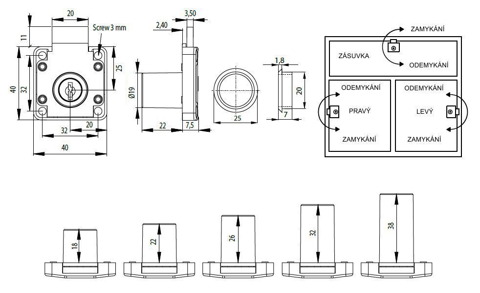 Délka cylindru: 22 mm