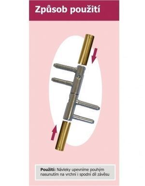 Montáž je zcela jednoduchá a provádí se pouhým nasunutím na závěs. (na jeden pant potřebujete dva návleky)