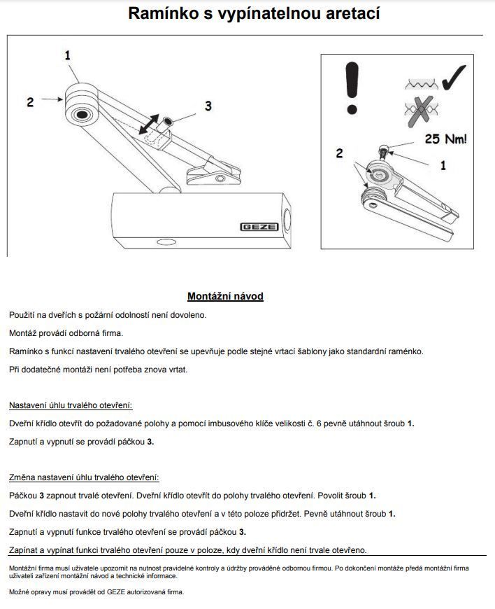 Umožňuje v přednastaveném úhlu zafixovat otevřené dveře v požadované poloze.