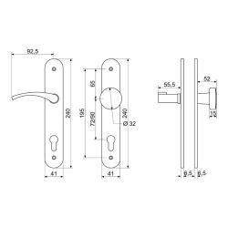 Štítové kování RICHTER RK.SPLIT.KO.PZ.72.L.CE koule-klika Levá v kombinaci ocele a hliníku Černá matná