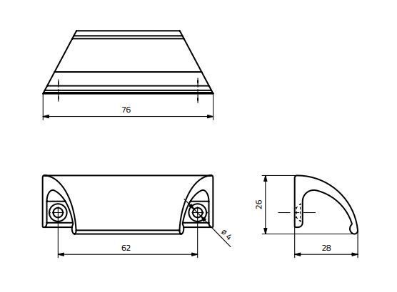 - rozměry - šířka 76 mm, rozteč otvorů 62 mm