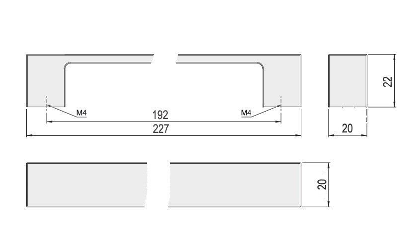 Jednodílná úchytka Nikl-broušená, balená včetně šroubků M4 pro uchycení.