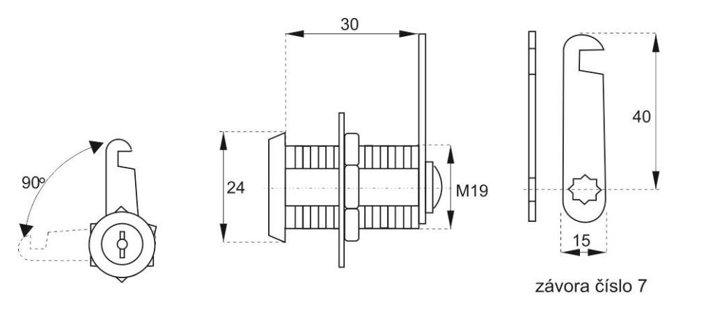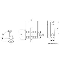 Univerzální zámek pro zamykání dřevěných, plechových a prosklených boxů a skříní.