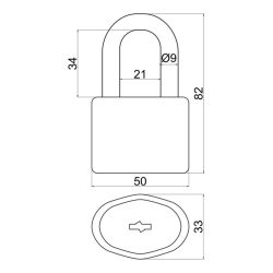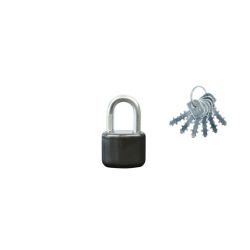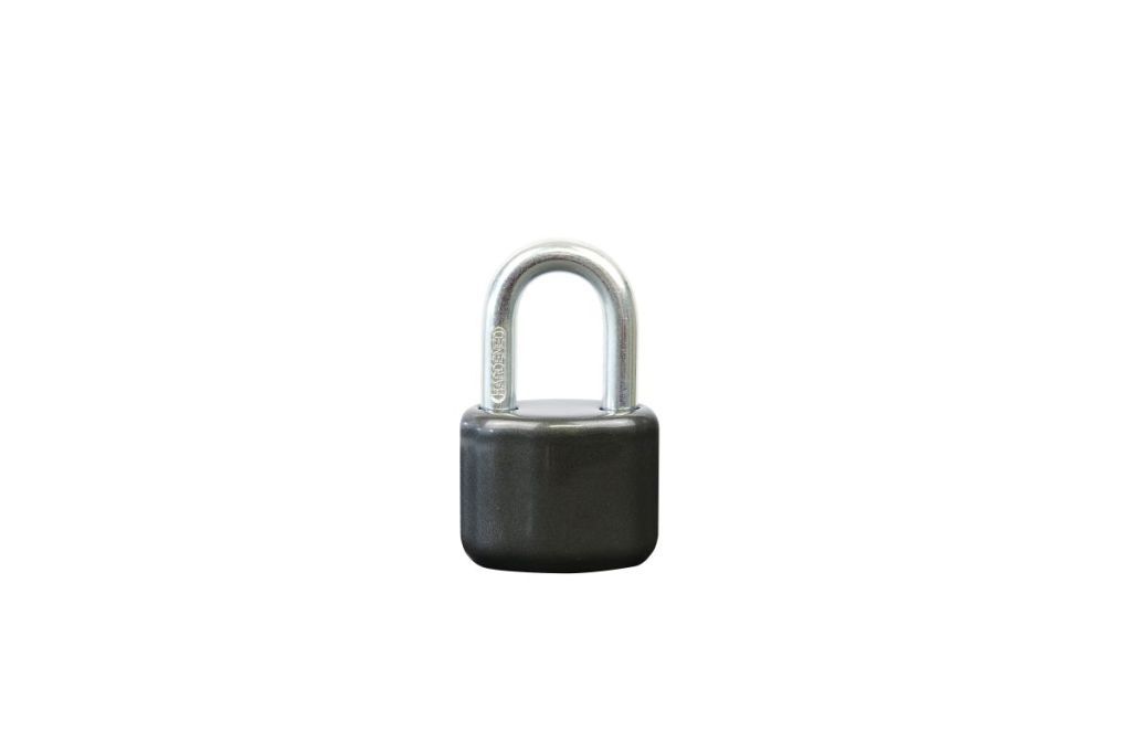 -Ocelový visací zámek jednoduché lamelové konstrukce.