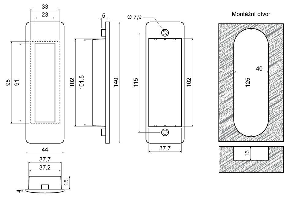 Rozměry š/v/h: 44 x 140 x 19 mm