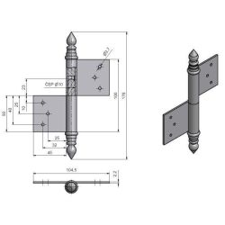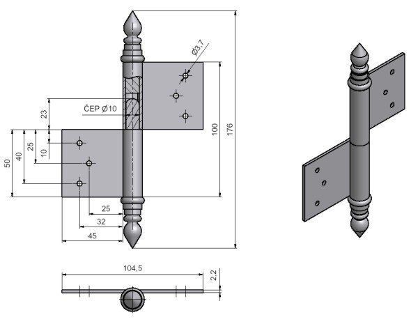 (nutno zajistit hřebíky bez hlavičky) Čep závěsu je opatřen ozdobným ukončením UR14.