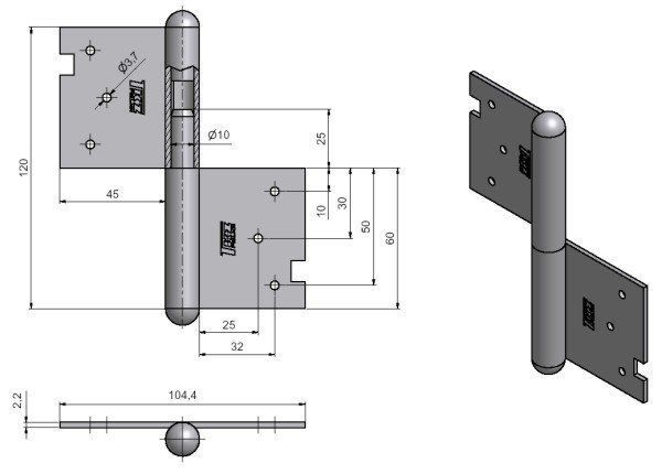 Závěs dveřní TKZ 120 Pravý Mosaz 92700800