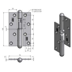 Závěs dveřní TKZ 120 Pravý rovný Mosaz 93000800