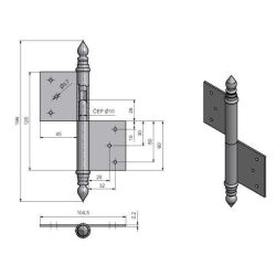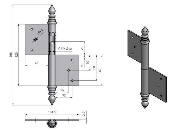 (nutno zajistit hřebíky bez hlavičky) Čep závěsu je opatřen ozdobným ukončením UR14.
