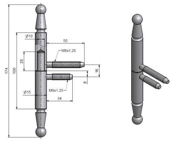 Závěs dveřní k zašroubování. Určený pro dřevěné dveře s polodrážkou a dřevěnou zárubeň.