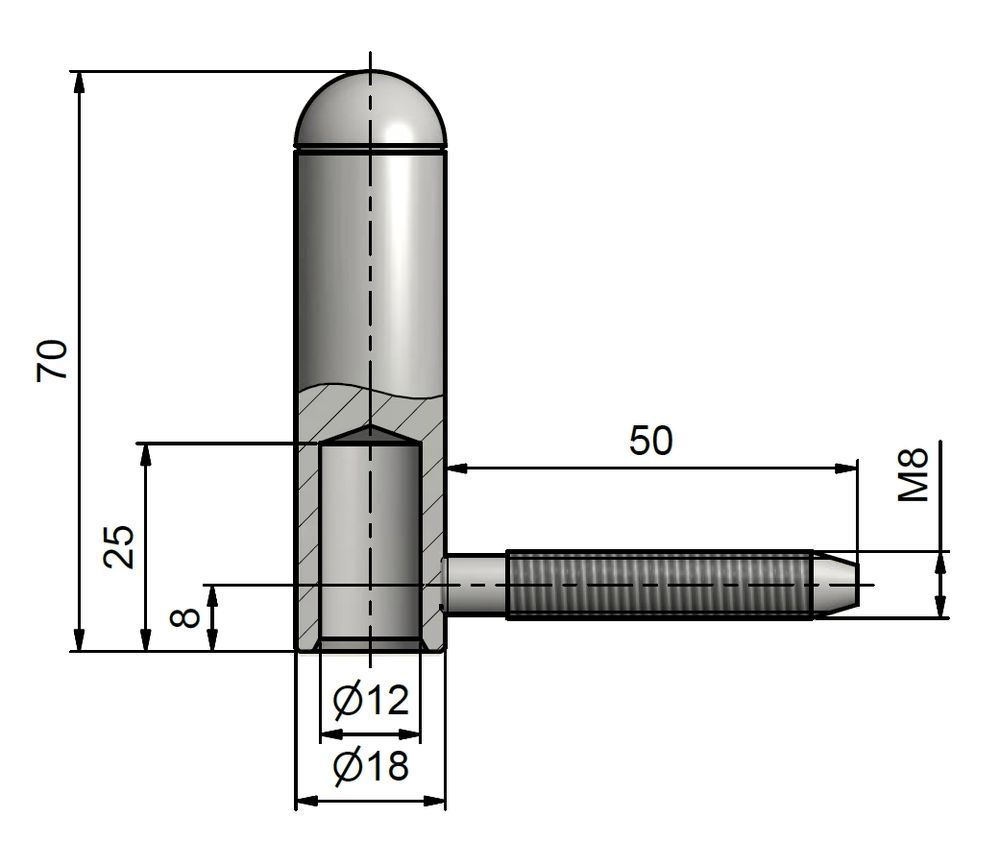 Vrchní díl závěsu s vnitřním průměrem 12 mm s půlkulatým ukončením.