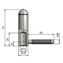 Závěs dveřní TKZ 18x120 UR25 VD M8x50 Zinek 91400530