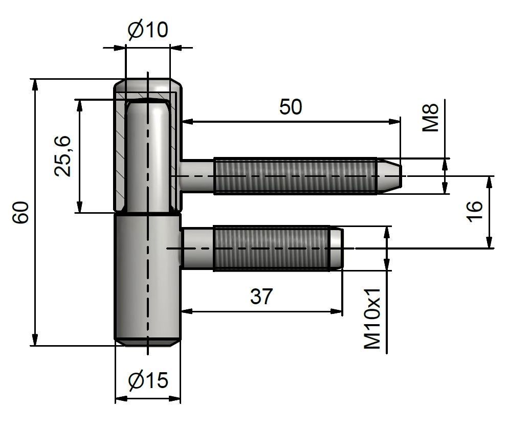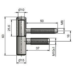 Spodní díl závěsu je určen do obložkové zárubně s držákem závěsu M10x1 lomeným nebo do ocelové zárubně s držákem M10x1.