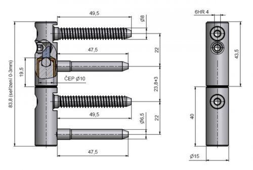 Závěs dveřní TKZ TRIO 15 DZ PH Nerez Kartáčovaný 55050000