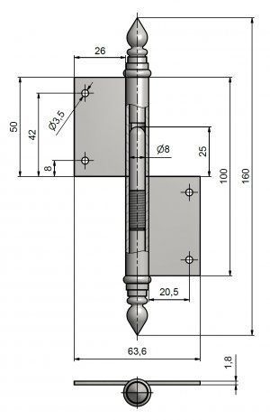 Závěs s ozdobným zakončením čepu.