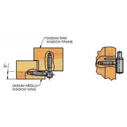 Závěs k zašroubování do okenního rámu a křídla s volně vloženým čepem, hřeb zabraňuje pootočení závěsu.