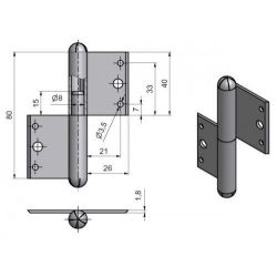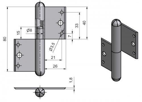 Závěs okenní TKZ 80 Pravý Bez povrchové úpravy 90200000