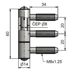 Závěs třídílný TKZ 14x60 M8/34,5 Zinek žlutý 96330510