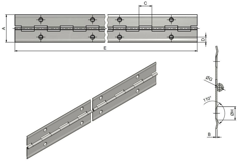 Závěs tyčový TKZ (pianový) 32x0,6x3500/70 s prolisem Nikl 71023704